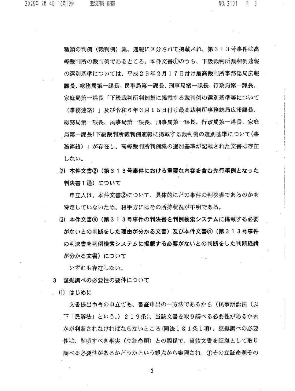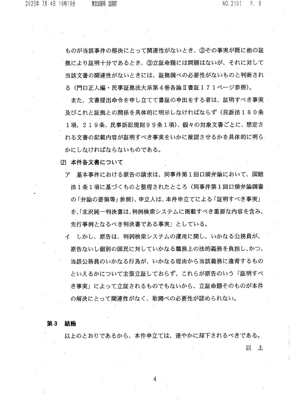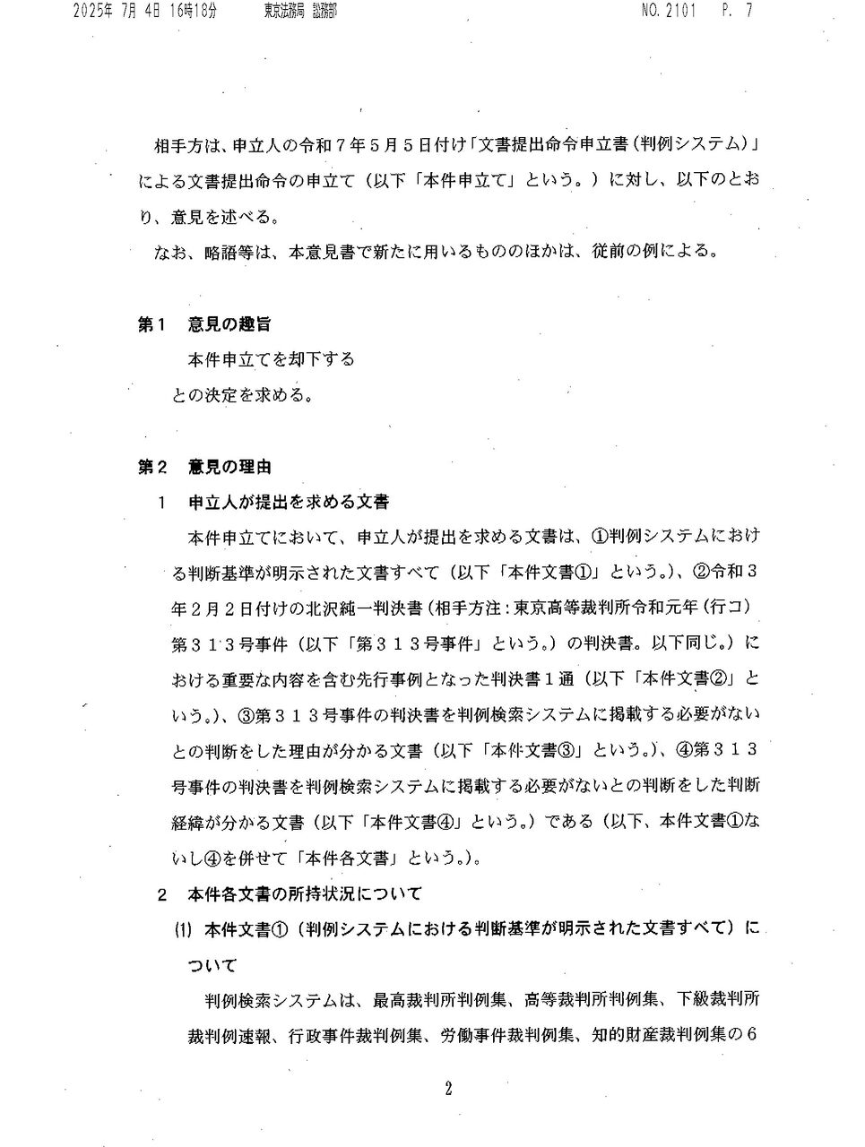 □SK250704文提に対する意見書 判例検索訴訟<4p>10行目から