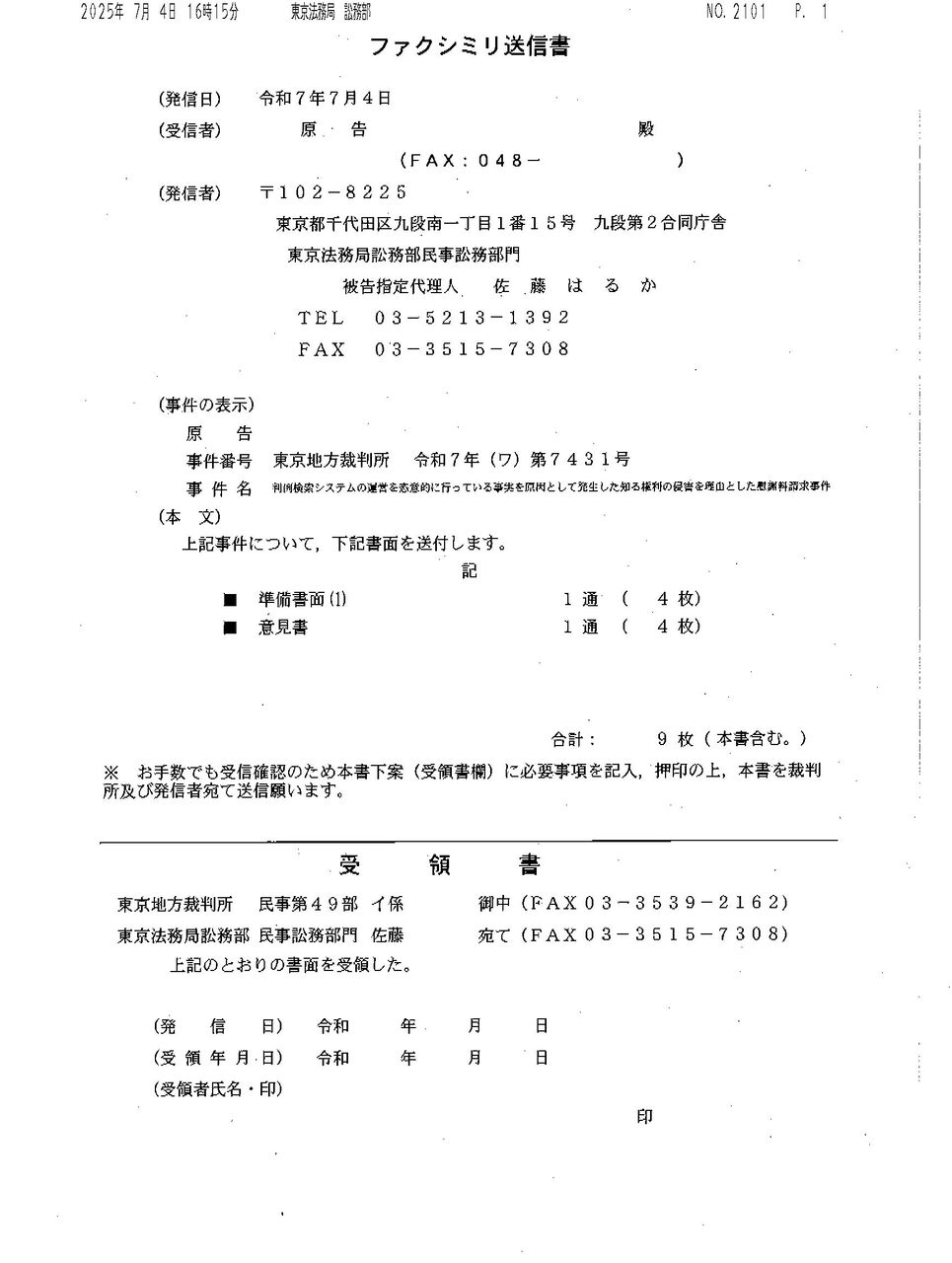 9 SK 250704 FAX送信書 鈴木馨祐訴訟