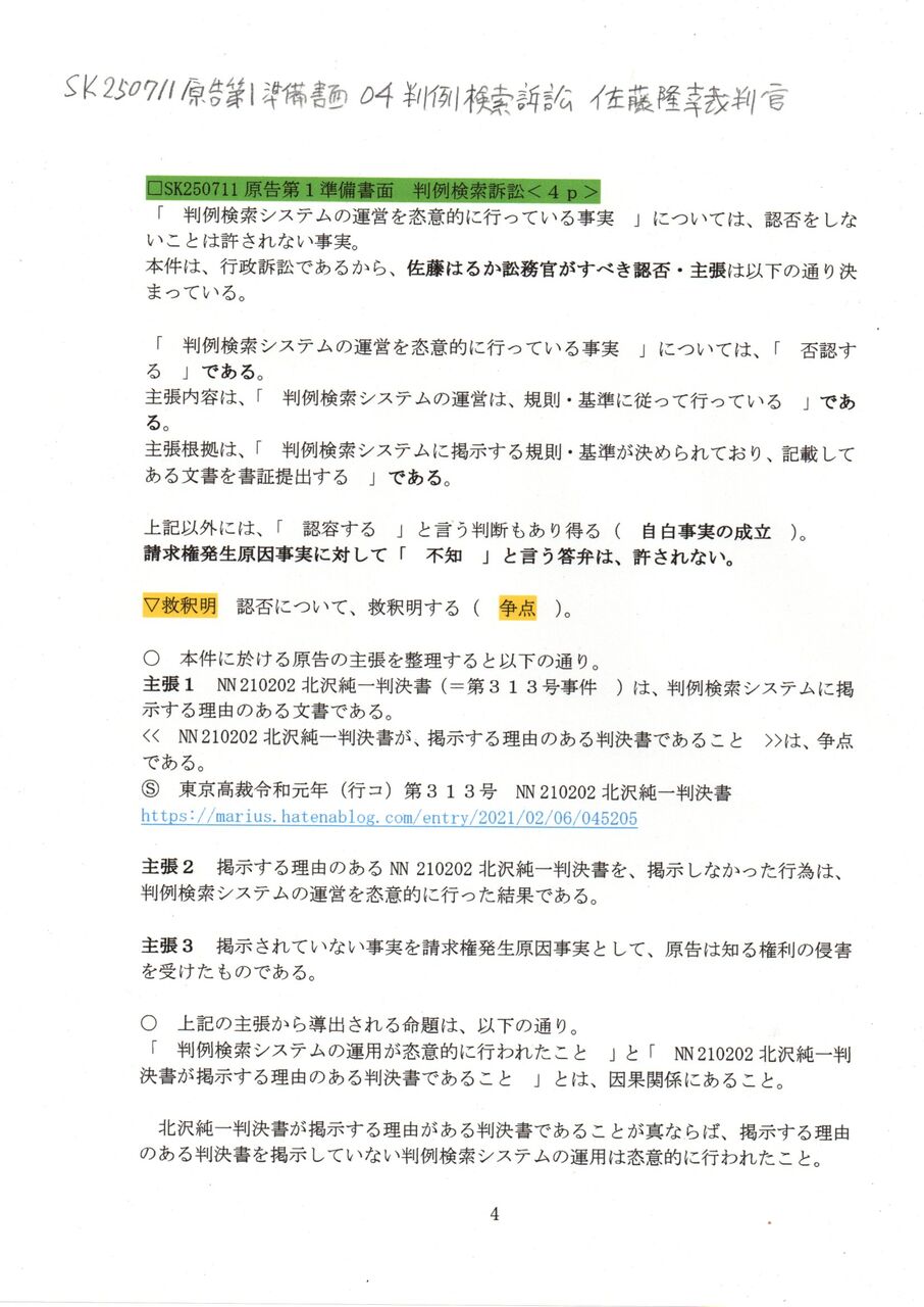 4 SK 250711 原告第1準備書面 04判例検索訴訟 佐藤隆幸裁判官