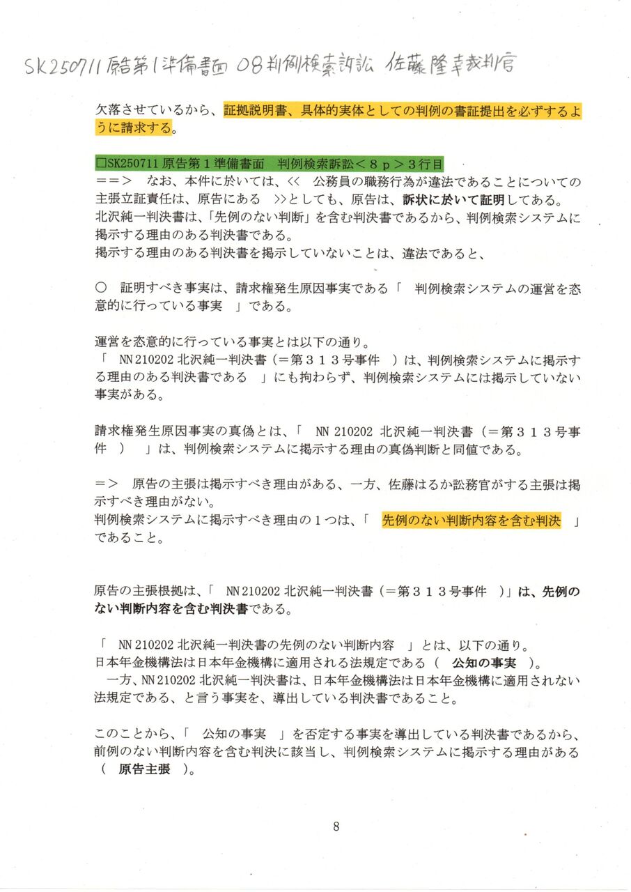 8 SK 250711 原告第1準備書面 08判例検索訴訟 佐藤隆幸裁判官