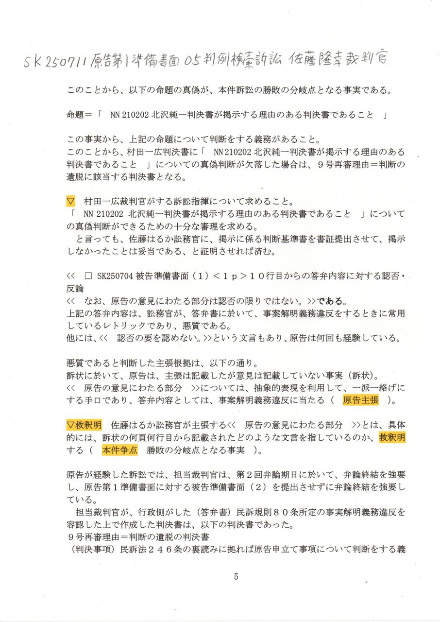5 SK 250711 原告第1準備書面 05判例検索訴訟 佐藤隆幸裁判官