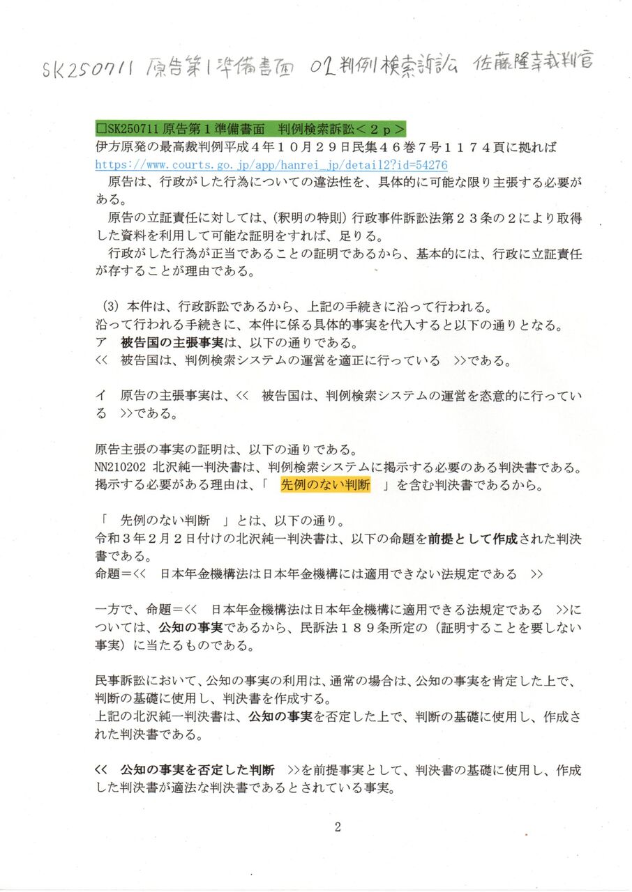 □SK250711原告第1準備書面 判例検索訴訟<2p>