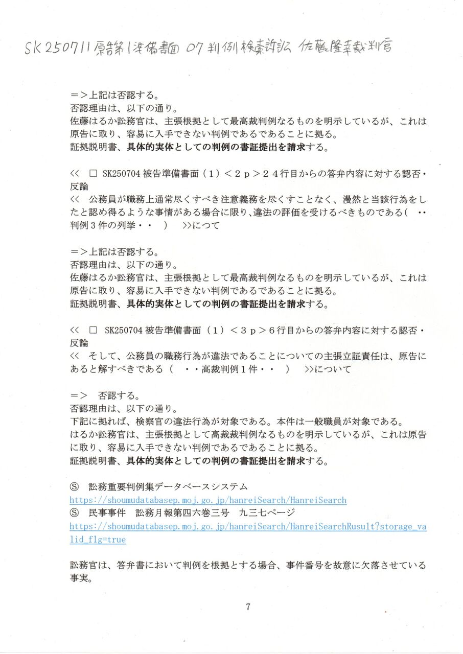 7 SK 250711 原告第1準備書面 07判例検索訴訟 佐藤隆幸裁判官