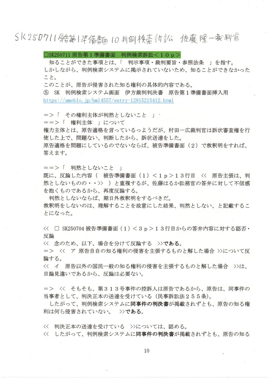 10 SK 250711 原告第1準備書面 10判例検索訴訟 佐藤隆幸裁判官