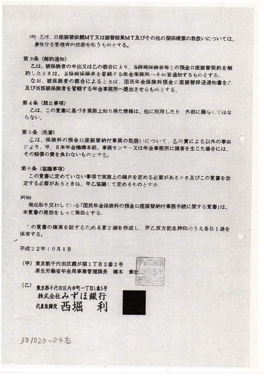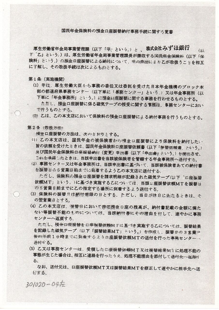 国民年金保険料の預金口座振替納付事務手続きに関する覚書