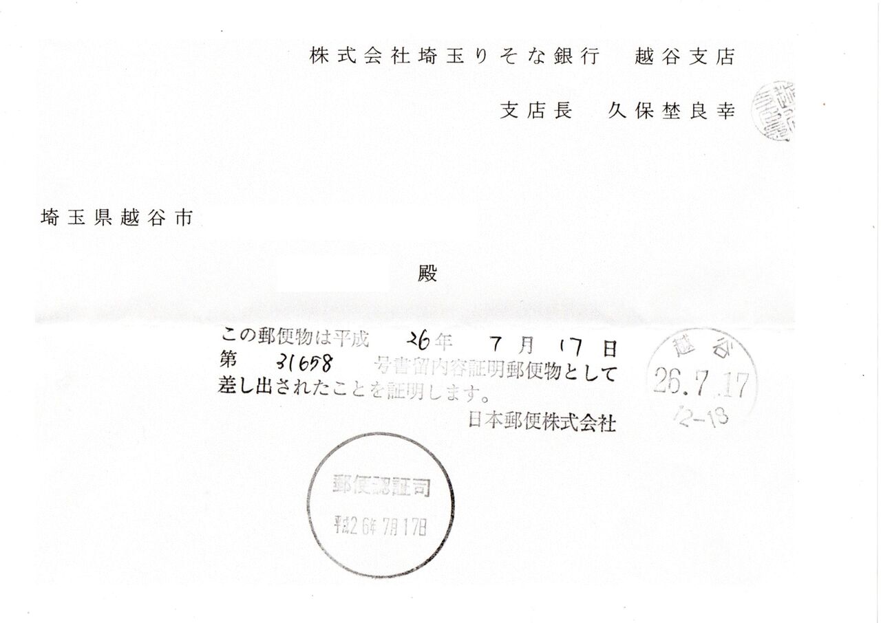 1 H260717 内容証明 01りそな銀行越谷支店長 久保埜良幸