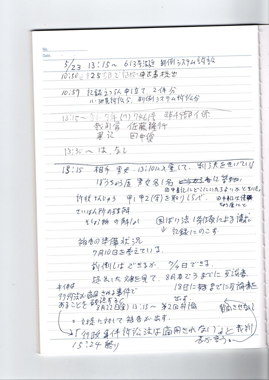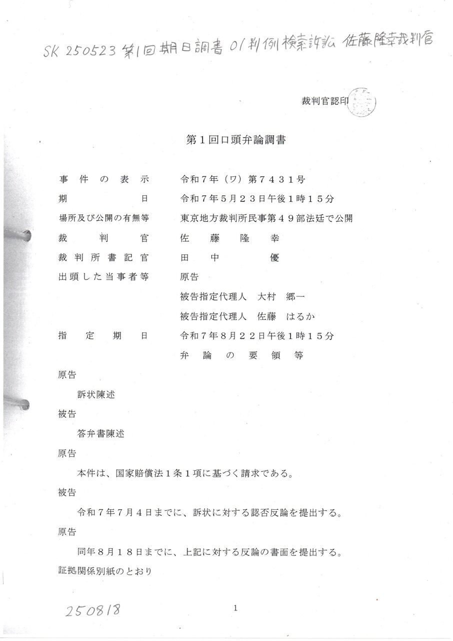 Ⓢ 画像版 SK 250523 第1回弁論メモ 判例検索訴訟 佐藤隆行裁判官