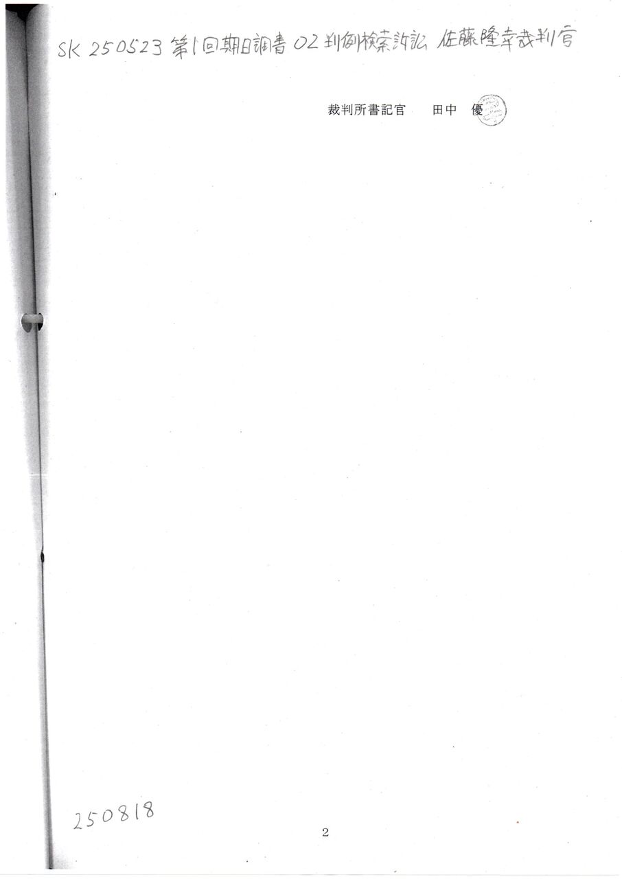 2 SK 250523 第1回期日調書 02判例検索訴訟 佐藤隆行裁判官