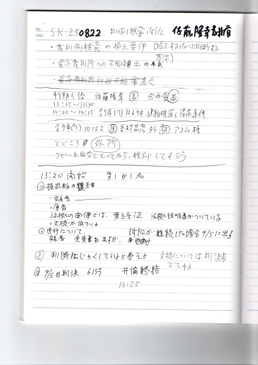 画像版 SK 250822 第2回口頭弁論メモ 判例検索訴訟 佐藤隆幸裁判官
