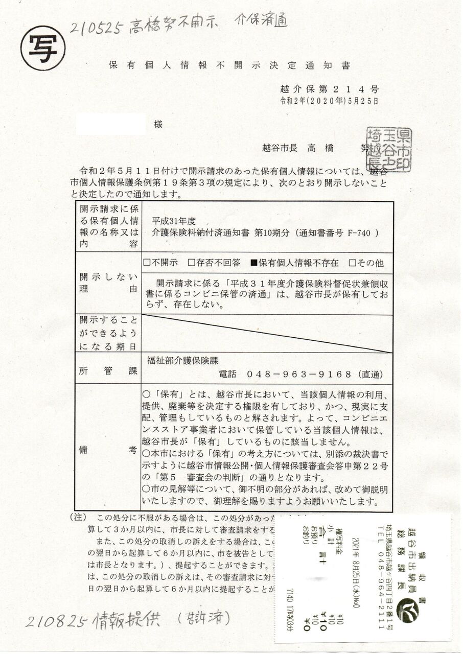 画像版 TT 210525不開示決定 済通 高橋努越谷市長 国保税二重取り