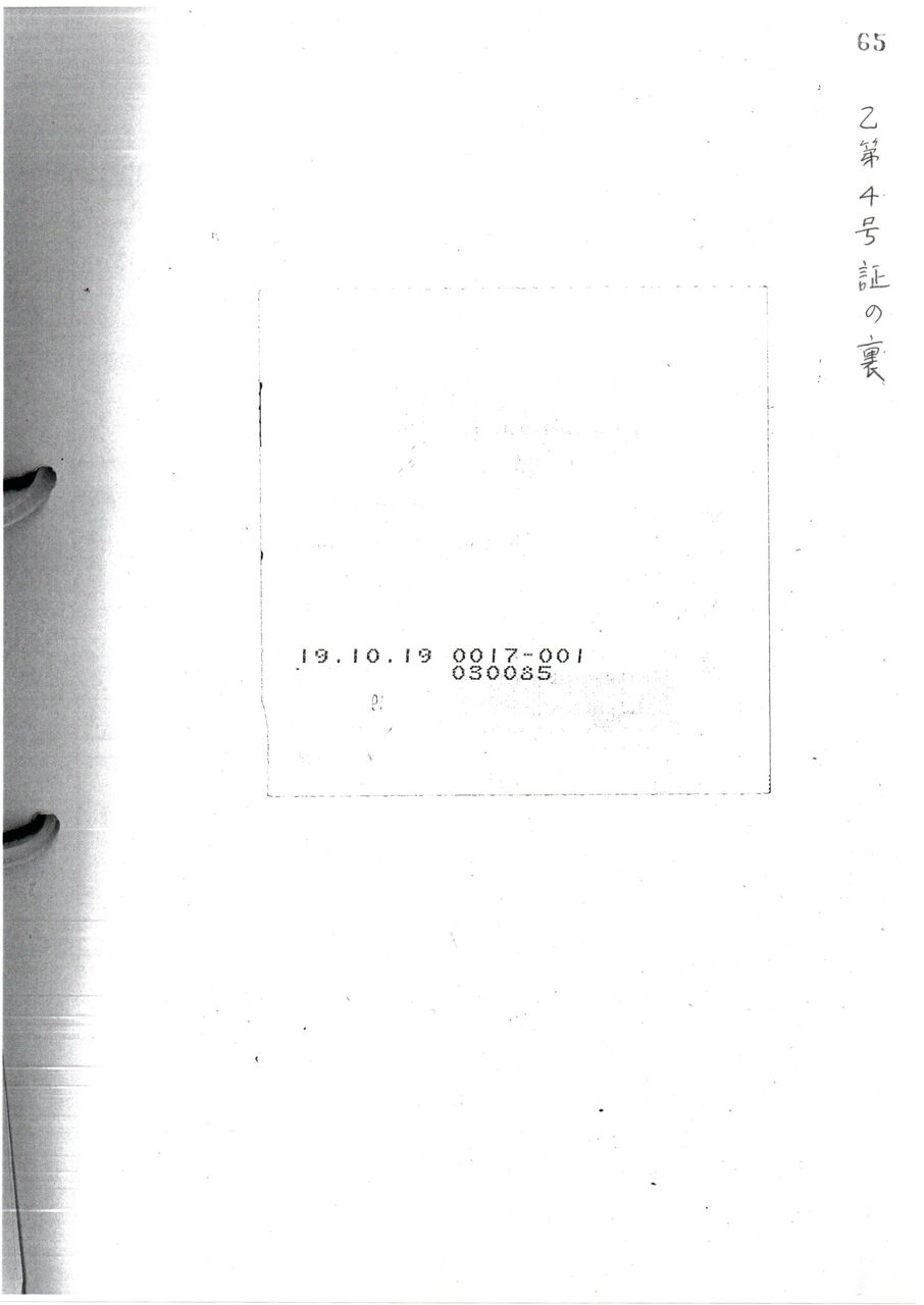 画像版 TT 64丁 乙イ第4号証 H191019済通 裏面印字の管理コード番号 高橋務訴訟