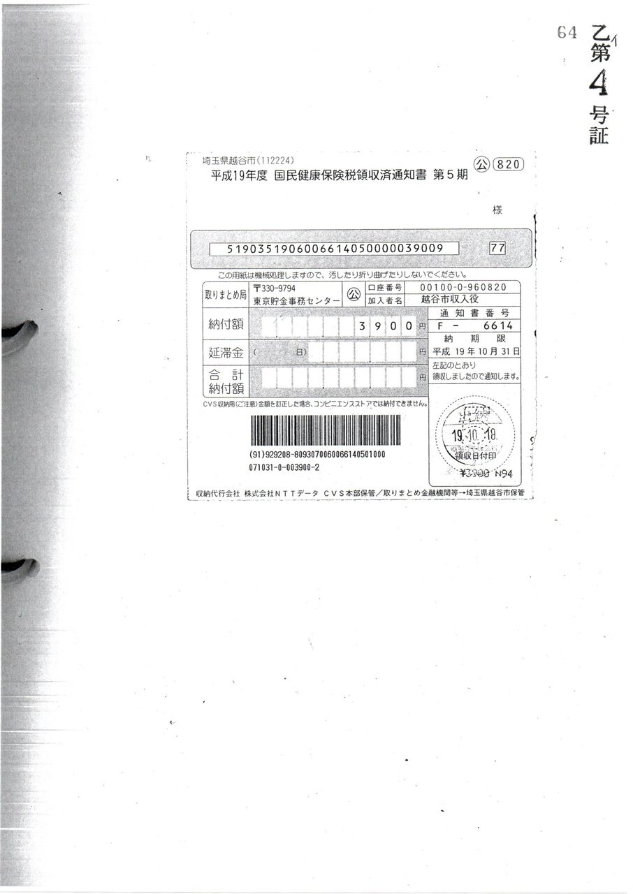 高橋務越谷市長の主張は、<< 越谷市役所内 埼玉りそな銀行 派出所 >>で午前の11時57分に納付している。