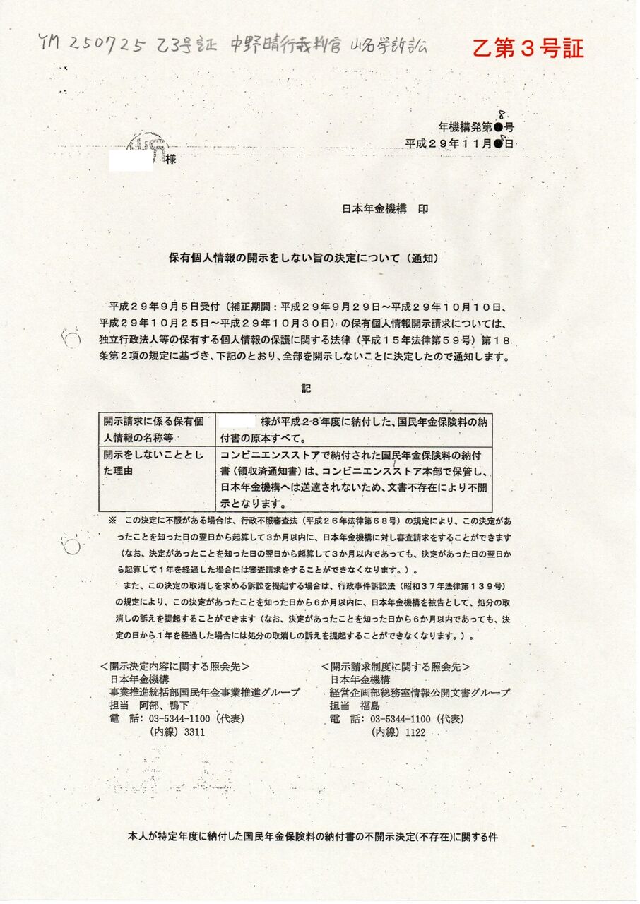 YM 250725 乙3号証 中野晴行裁判官 山名学訴訟