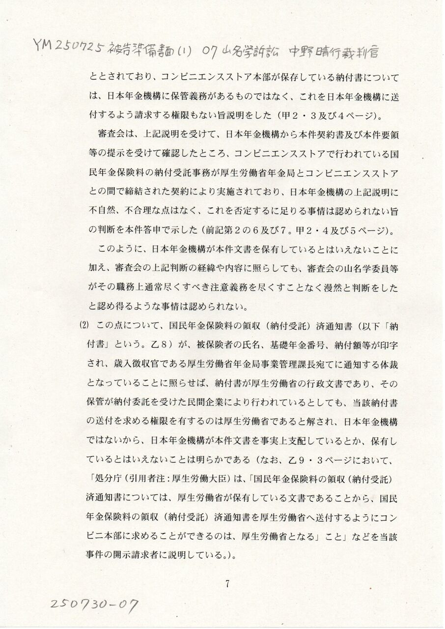 7 YM 250725 被告準備書面(1) 07中野晴行裁判官 山名学訴訟