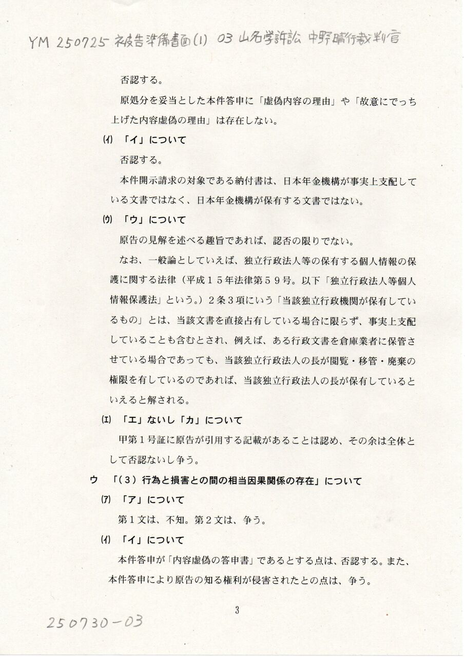 3 YM 250725 被告準備書面(1) 03中野晴行裁判官 山名学訴訟