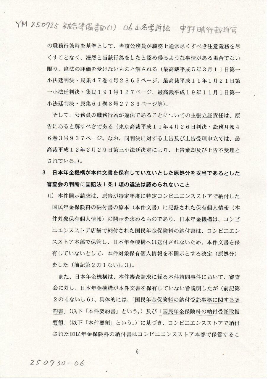 6 YM 250725 被告準備書面(1) 06中野晴行裁判官 山名学訴訟