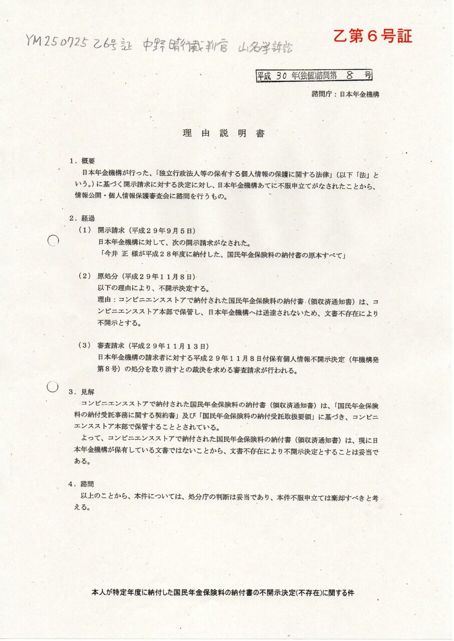 YM 250725 乙6号証 中野晴行裁判官 山名学訴訟