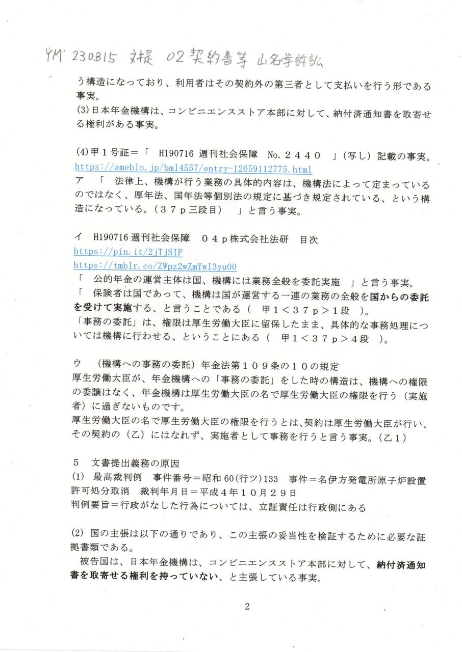 2 YM 250815 文書提出命令申立書 02山名学訴訟 中野晴行裁判官