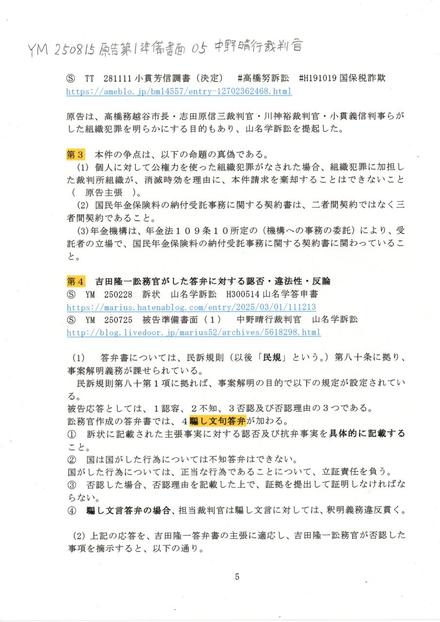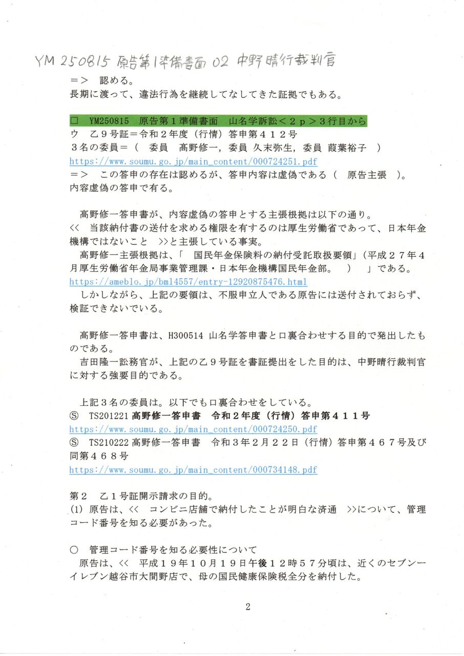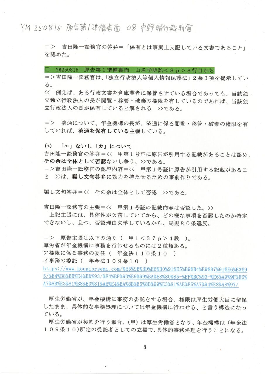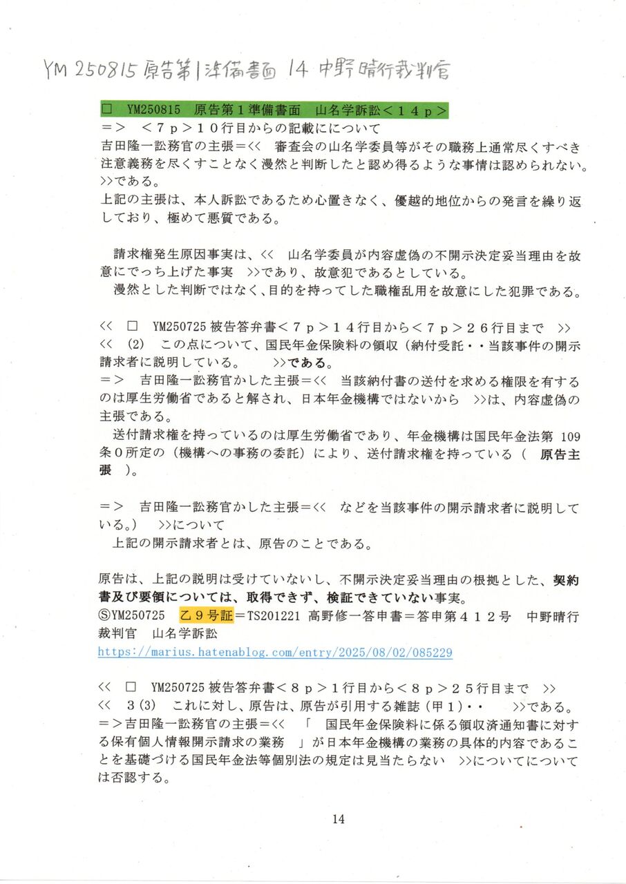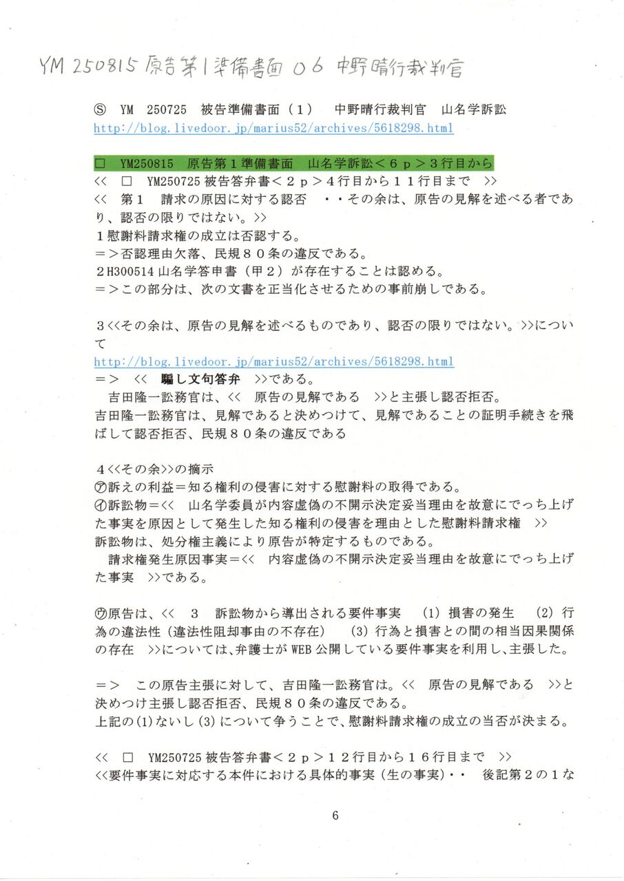画像版 YM 250815 原告第1準備書面 中野晴行裁判官 山名学訴訟