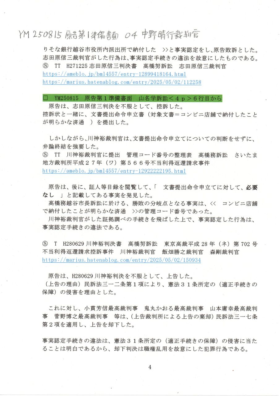 4 YM 250815 原告第1準備書面 04中野晴行裁判官