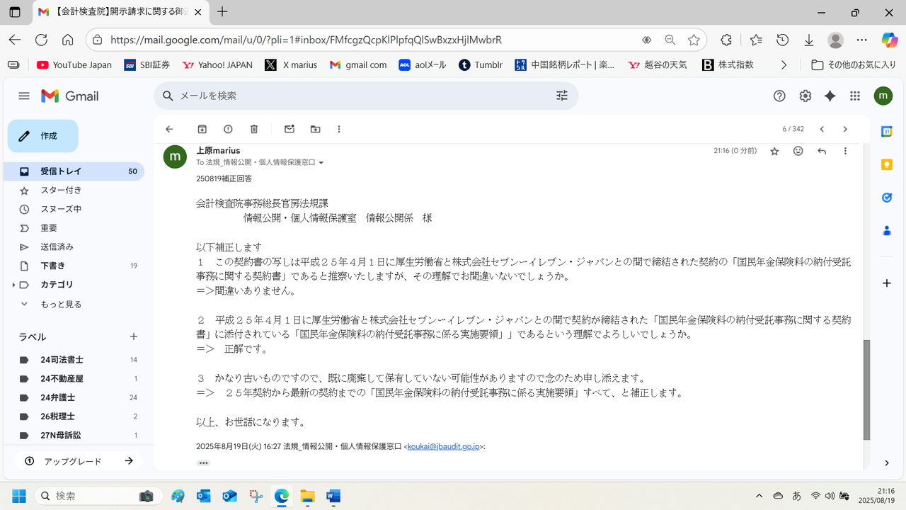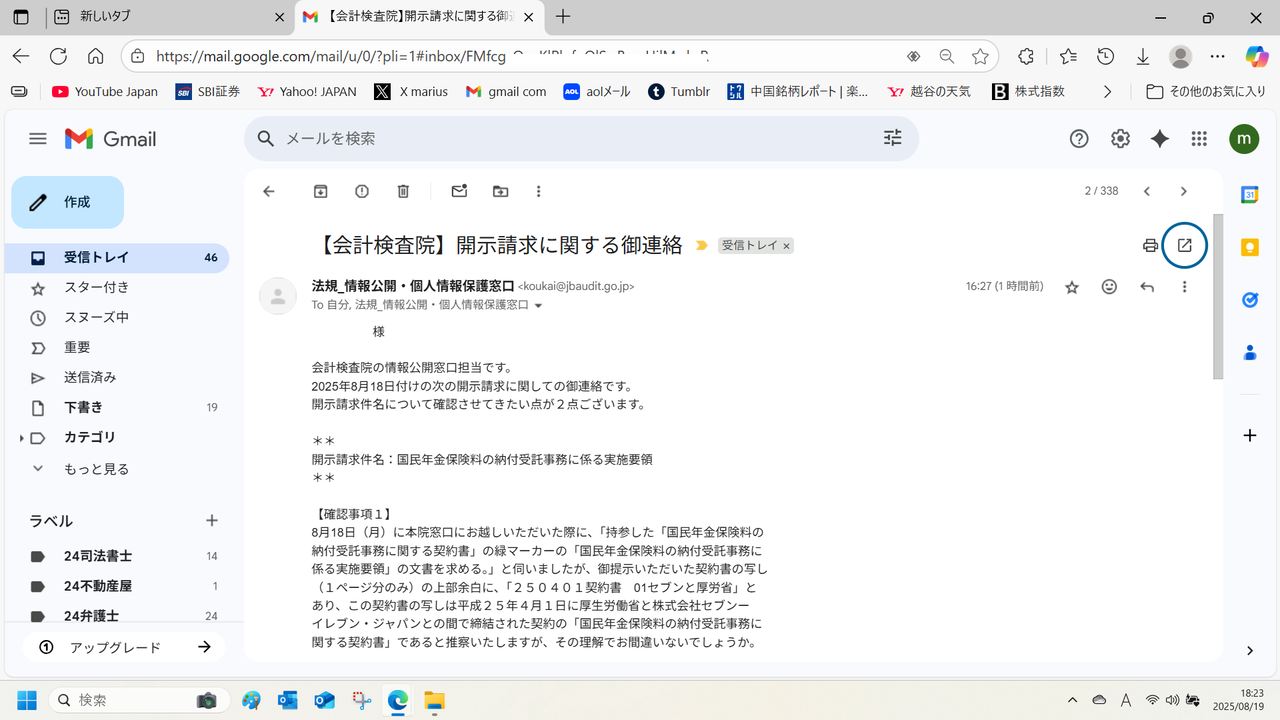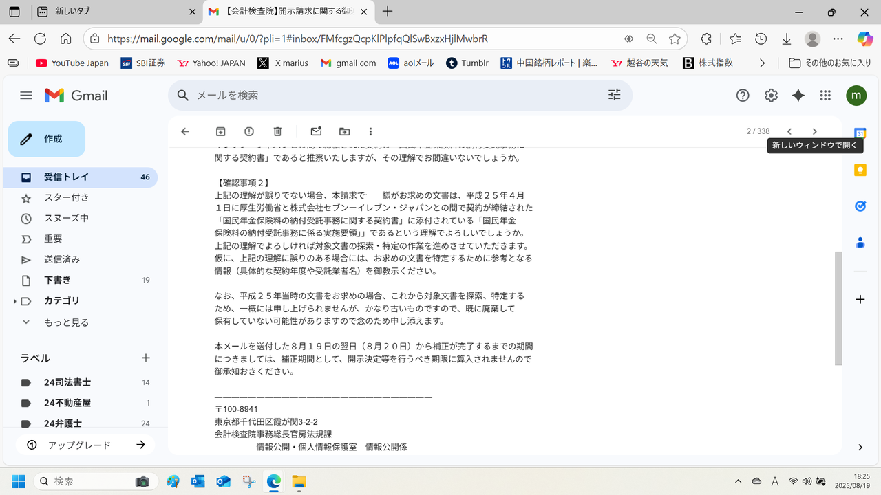 2025年8月18日付けの次の開示請求に関しての御連絡です。