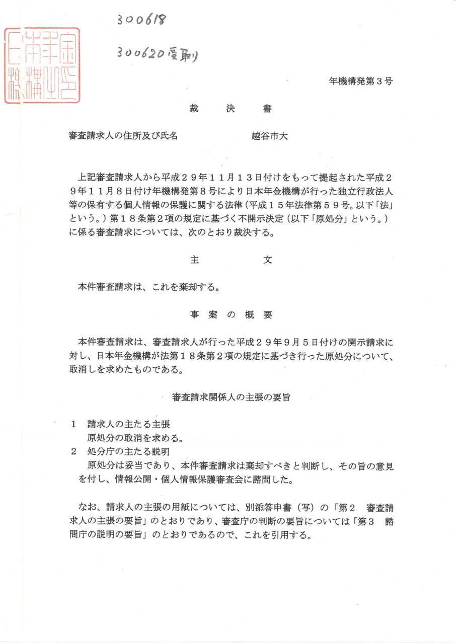 画像版 NN 300618 年金機構の裁決書 済通不開示決定 保有の定義適用せず