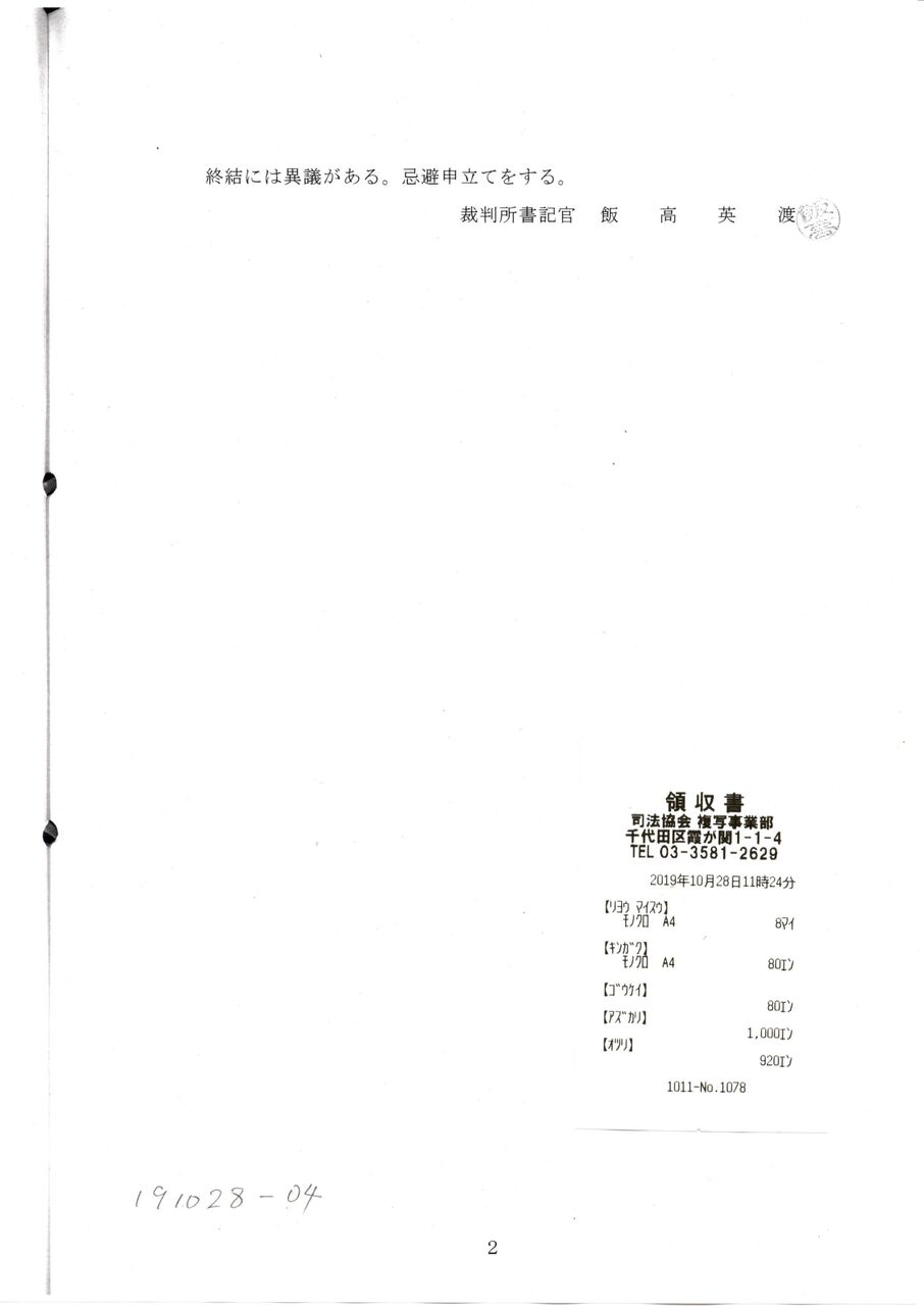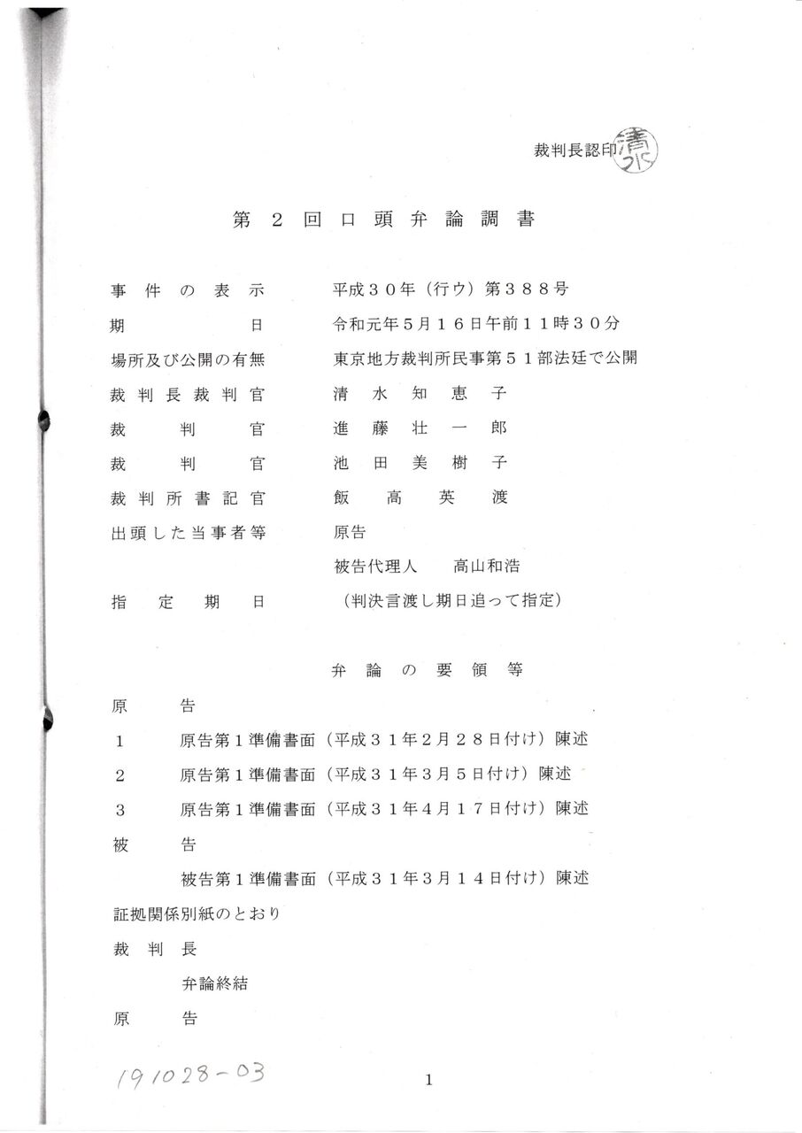 2NN 190516第2回期日調書 02年金機構訴訟 清水知恵子裁判官