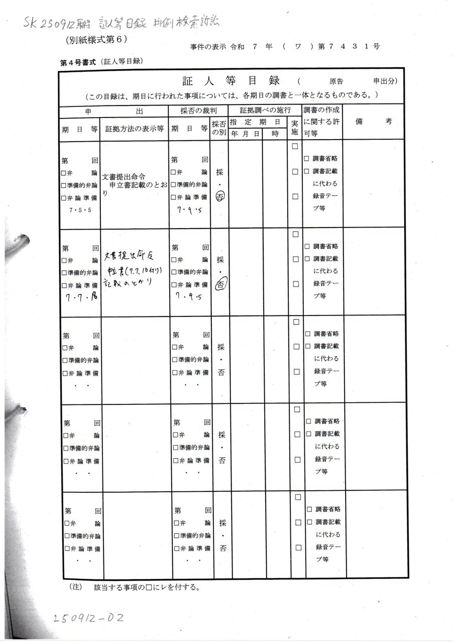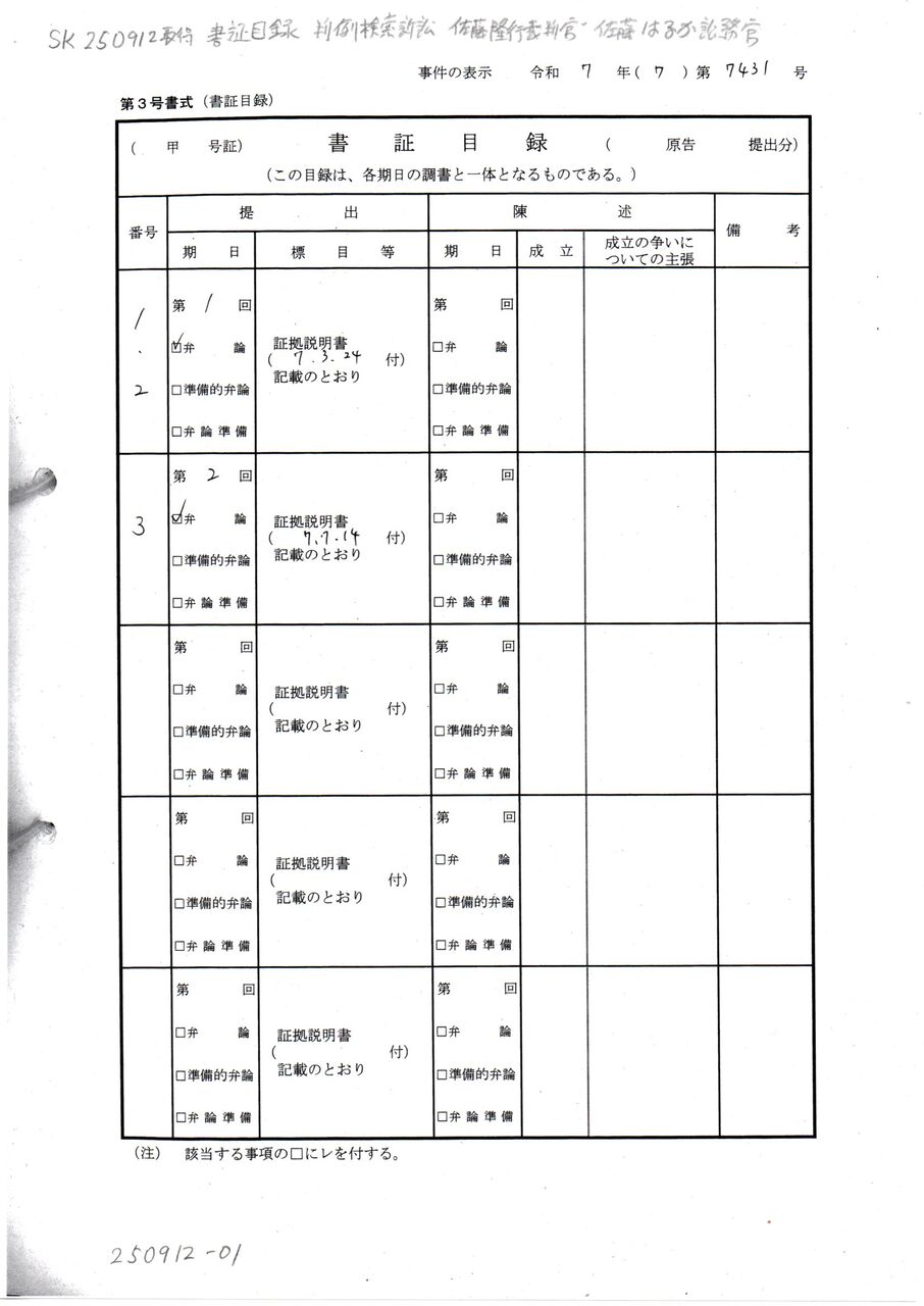 画像版 SK 250912取得 書証目録 判例検索訴訟 佐藤隆行裁判官 佐藤はるか訟務官