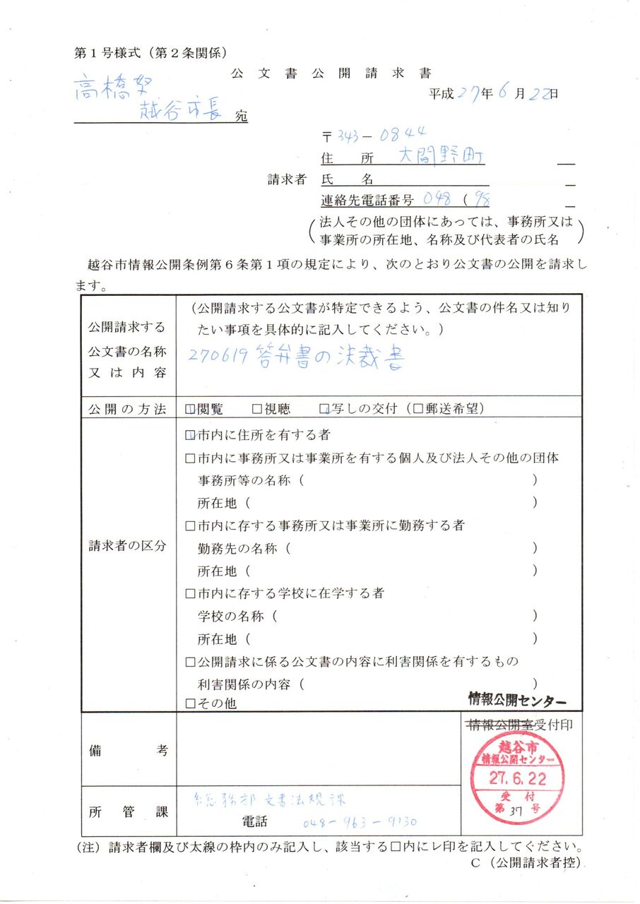 3 TT H270713取得日 部分公開 03高橋務越谷市長