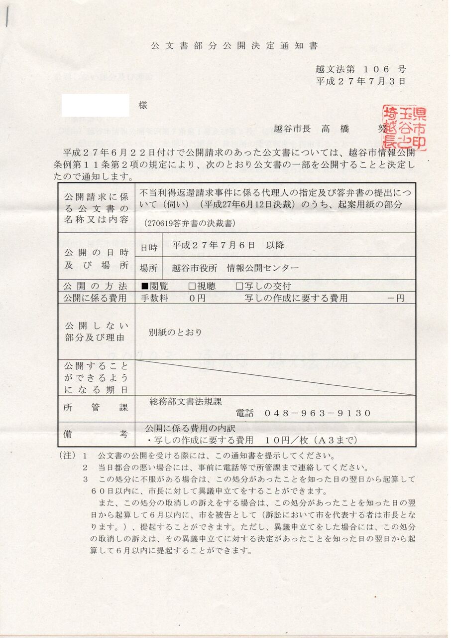 1 TT H270703 部分公開決定通知 01高橋務越谷市長