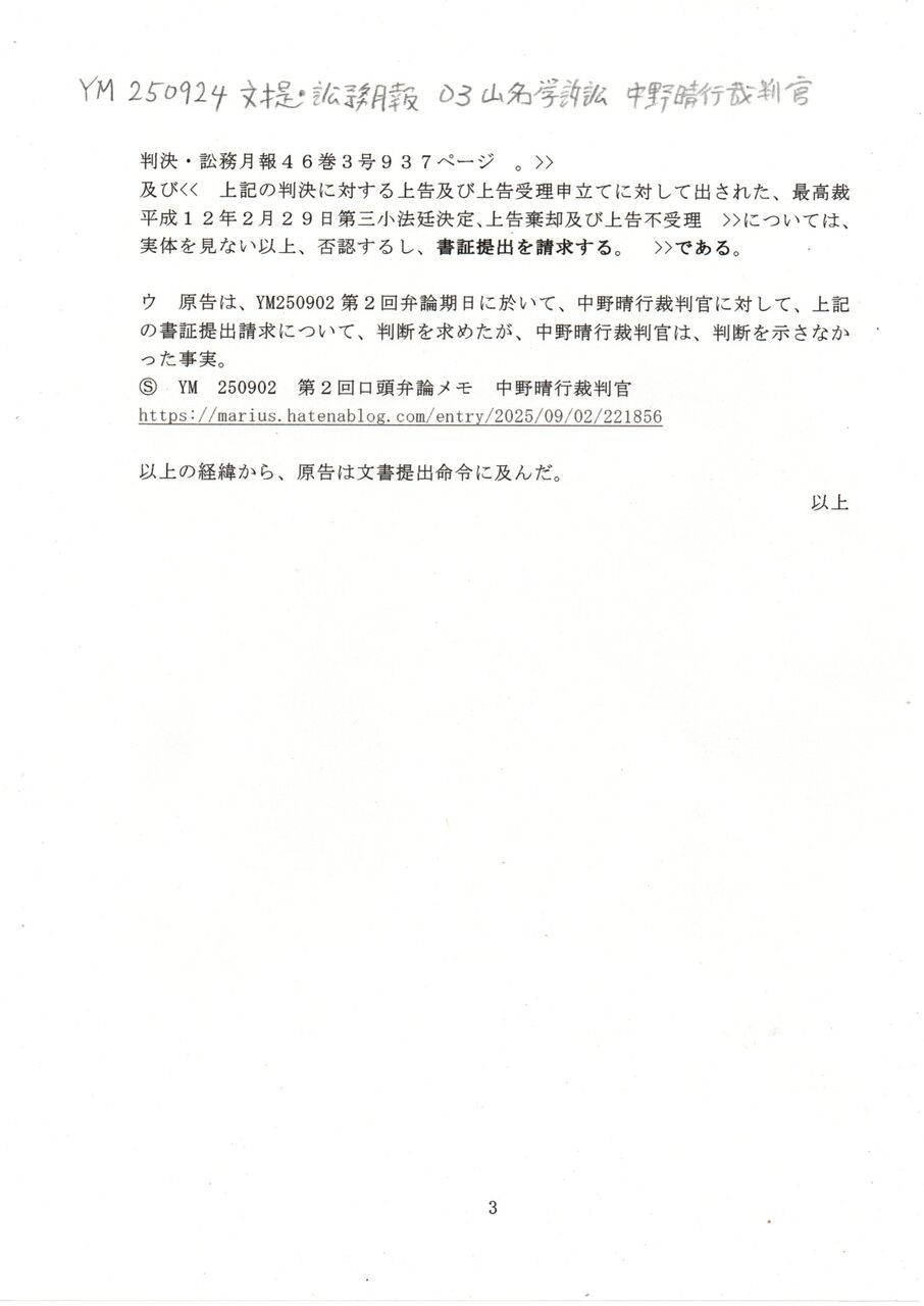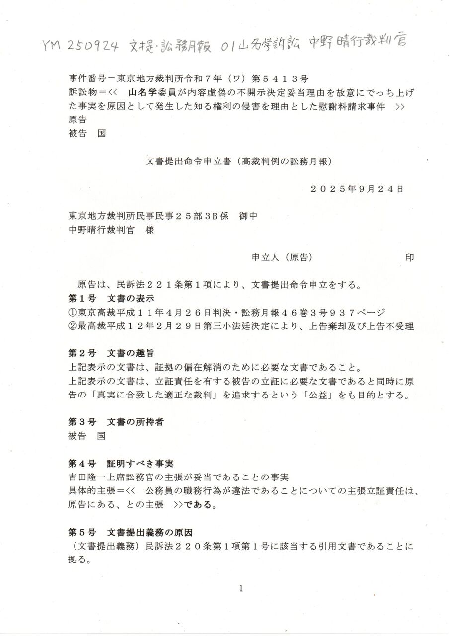 画像版 YM 250924文書提出命令申立 高裁判例の訟務月報 山名学訴訟