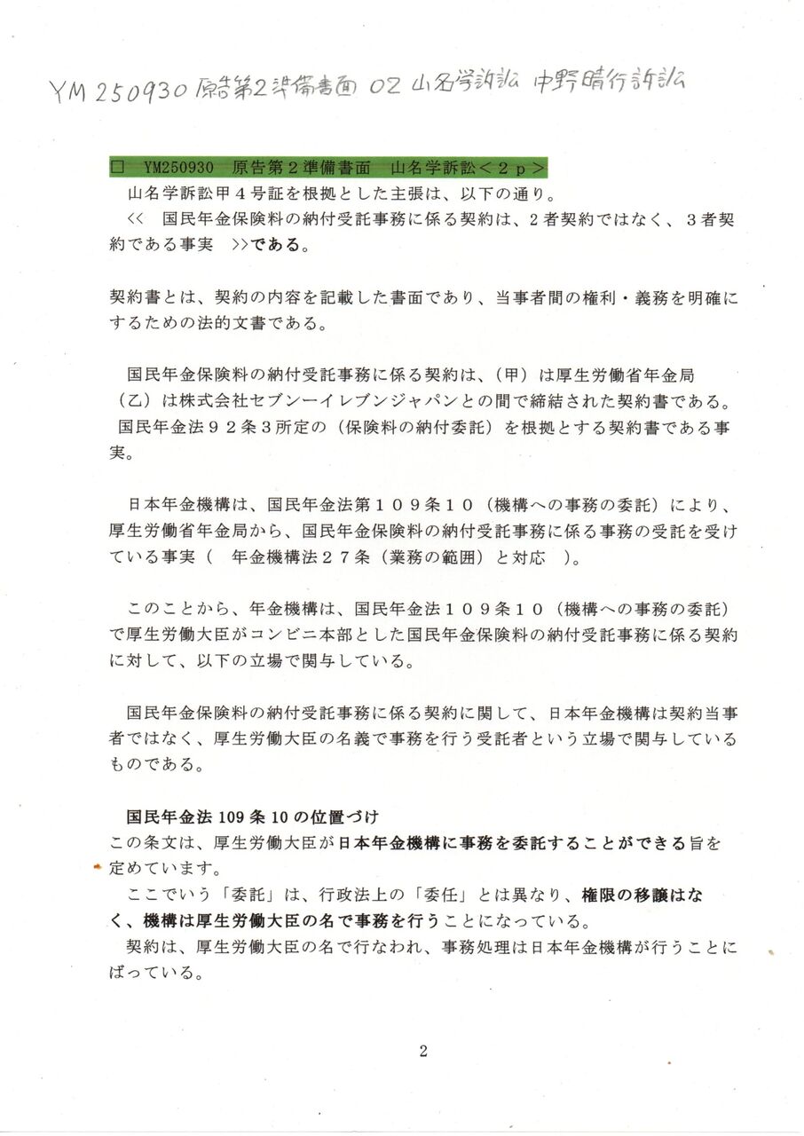 □ YM250930 原告第2準備書面 山名学訴訟<2p>
