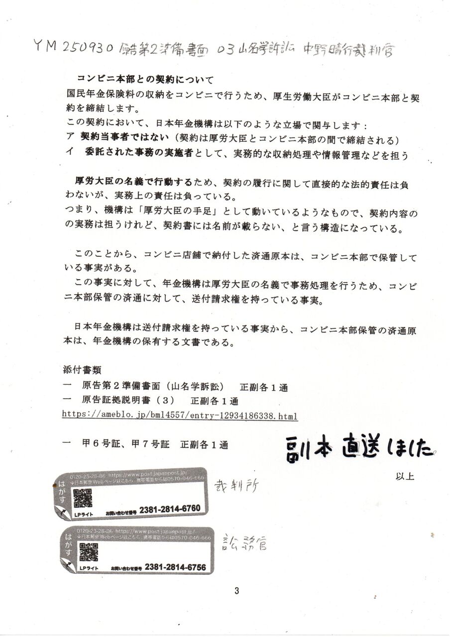 画像版 YM 250930 副本直送しました 中野晴行裁判官宛て 山名学訴訟