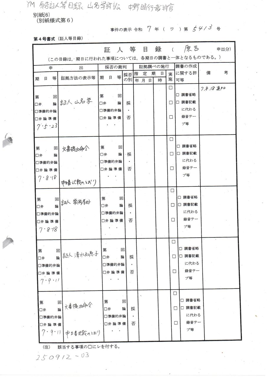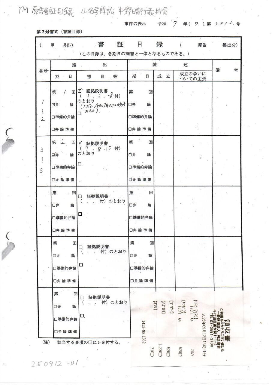 画像版 YM 書証目録等 山名学訴訟 中野晴行裁判官