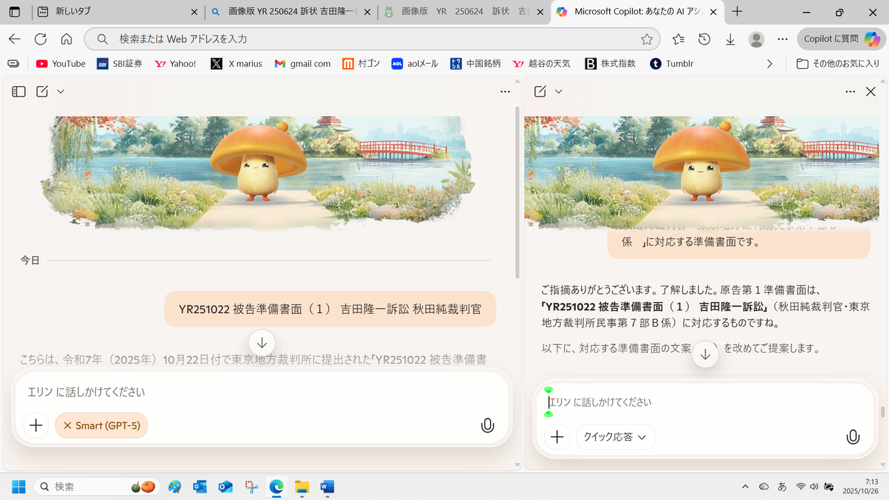 作成を依頼したのは原告第1準備書面は、「 YR251022 被告準備書面(1) 吉田隆一訴訟 秋田純裁判官 東京地方裁判所民事第7部B係 」に対応する準備書面です。
