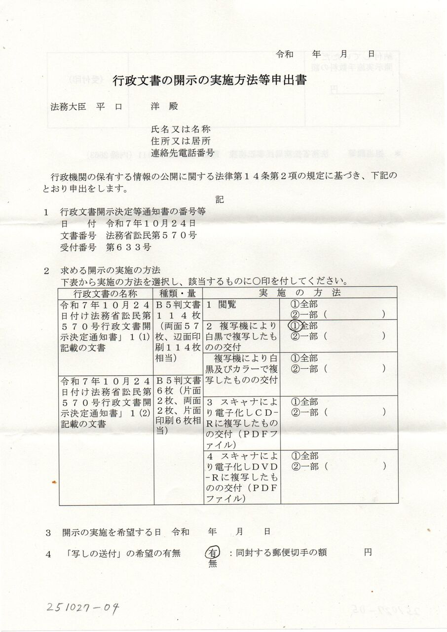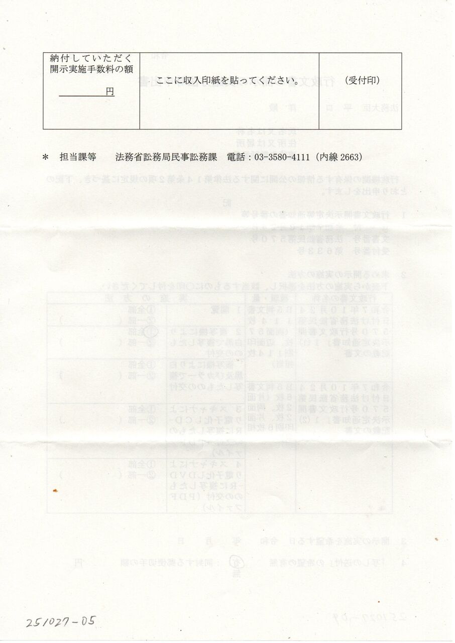 5 HM 251024 開示通知 05東京高裁判例 実施方法等申出書の裏