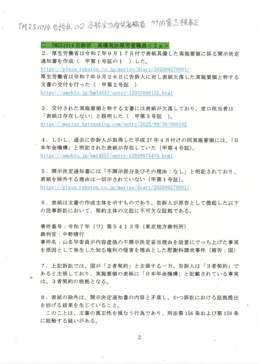 □ TM251014告訴状 高橋実沙厚労省職員<2p>