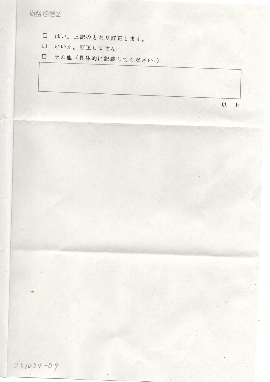 □ はい。上記のとおり訂正します。