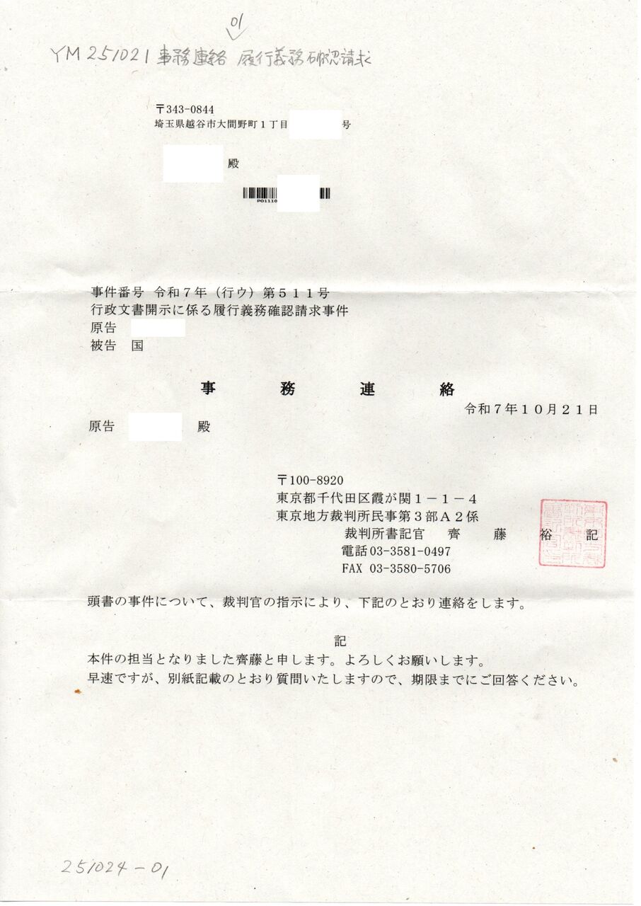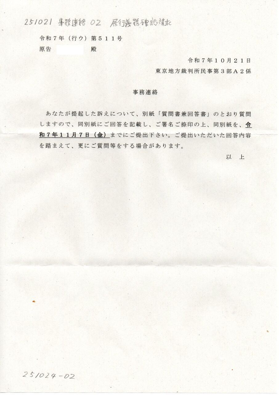 画像版 TM 251021 事務連絡 履行義務確認請求事件 高橋実沙訴訟