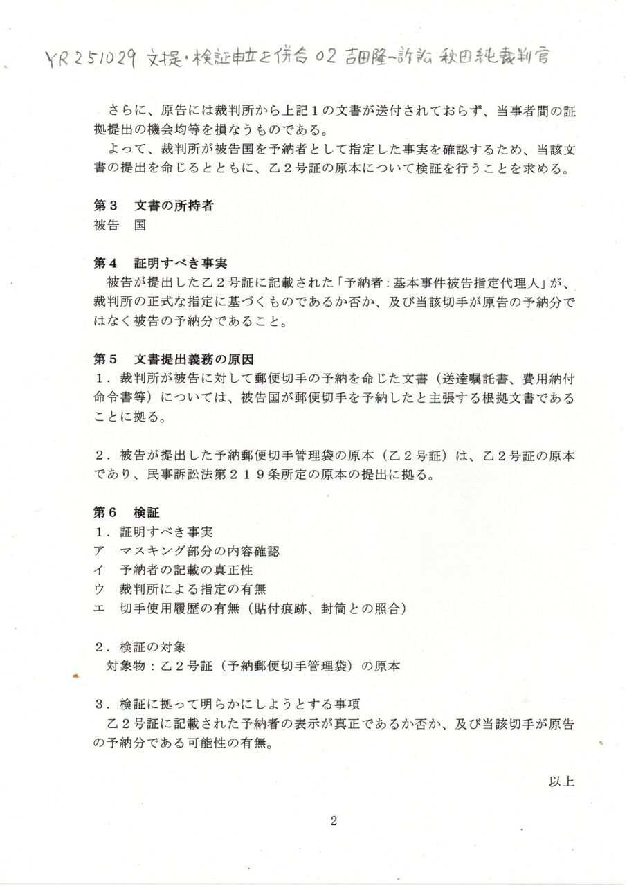 2 YR 251029 文提・検証を併合 02吉田隆一訴訟