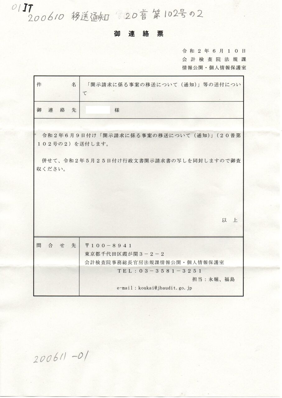03IT 200609 移送通知 開示請求書令和2年5月25日受付