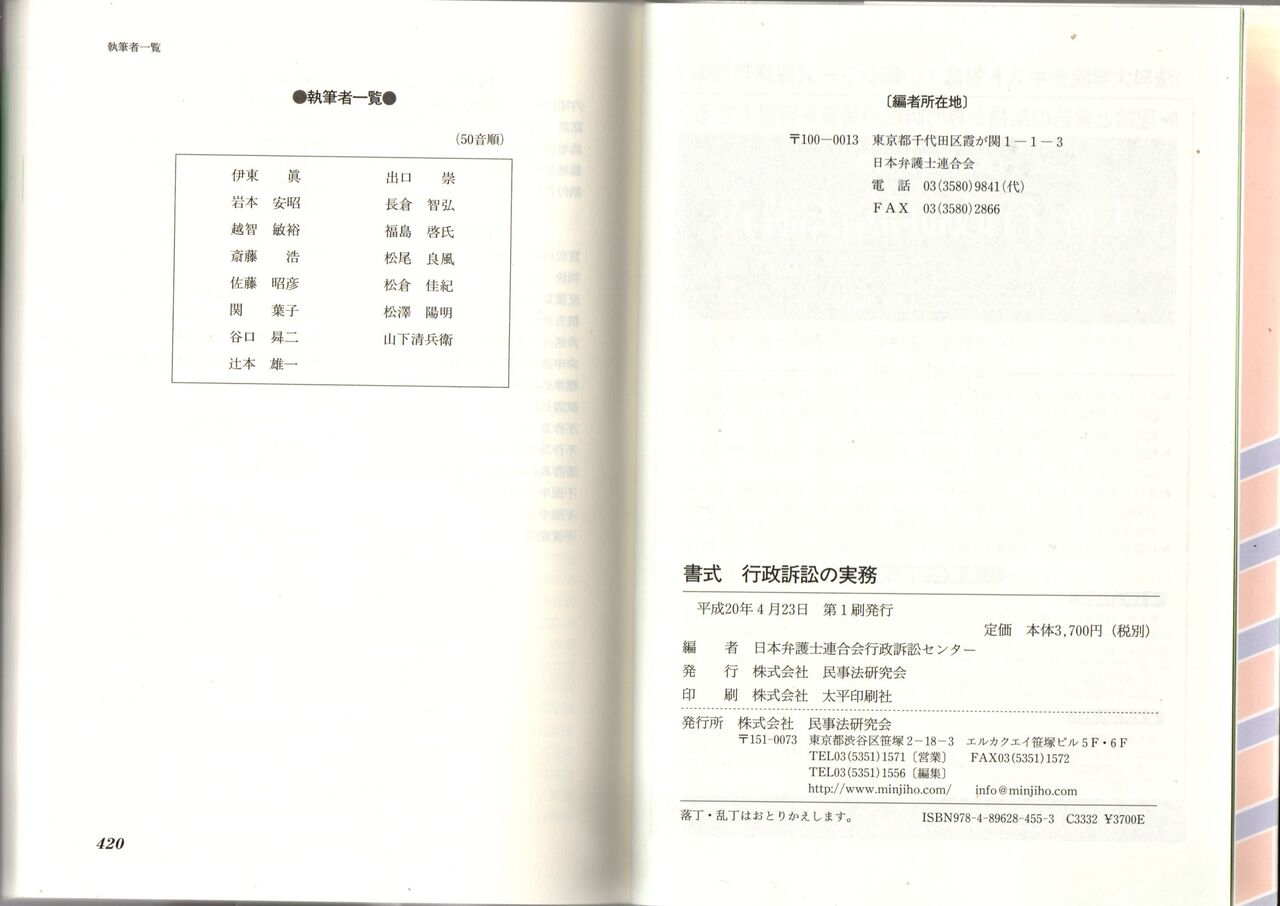 KA 421p 行政訴訟の実務 奥付 小池晃訴訟 宮坂昌利裁判官