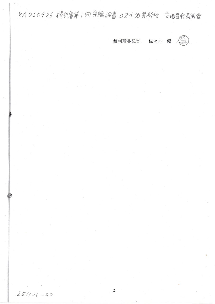 2 KA 250926 控訴審第1回期日調書 02小池晃訴訟