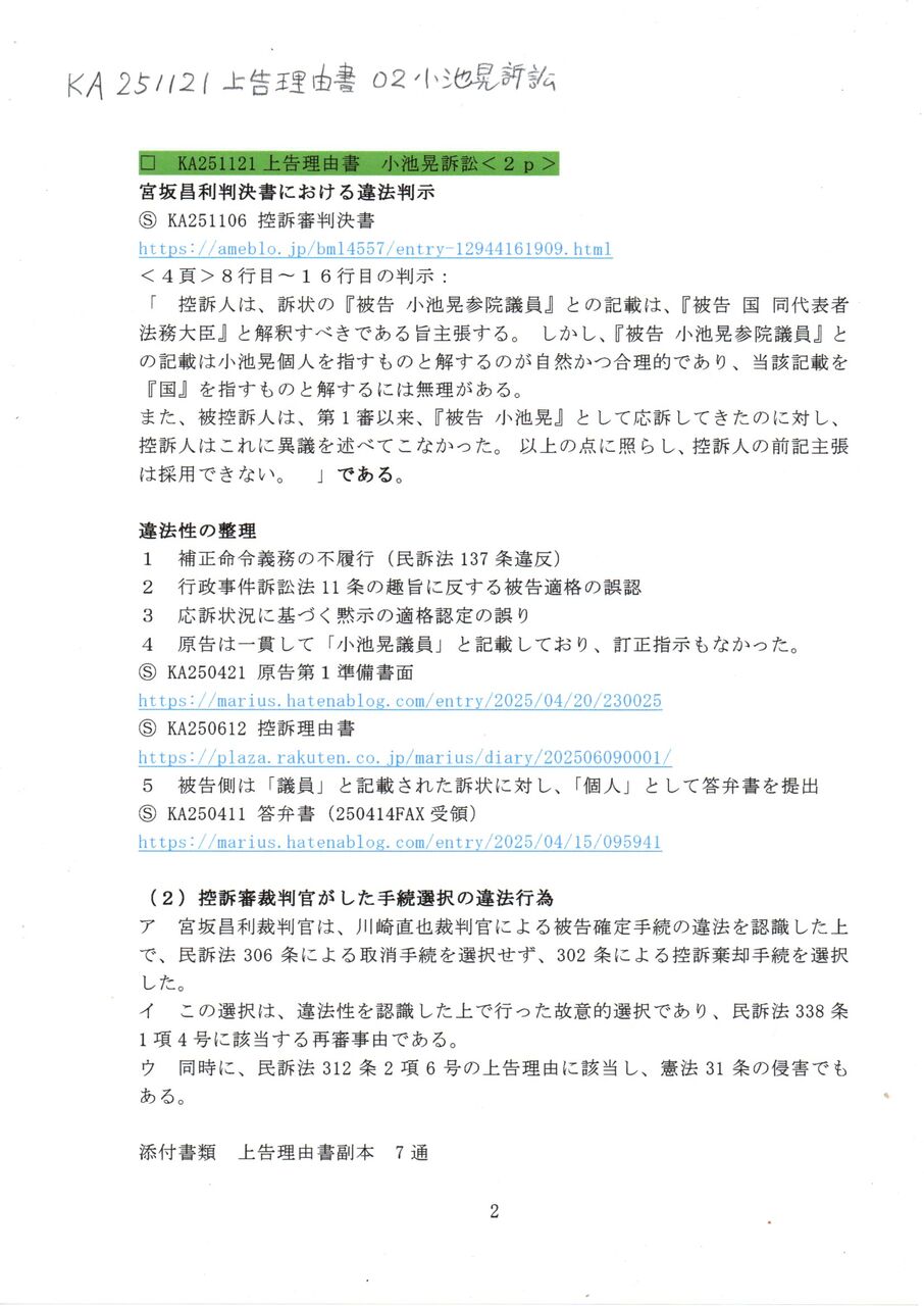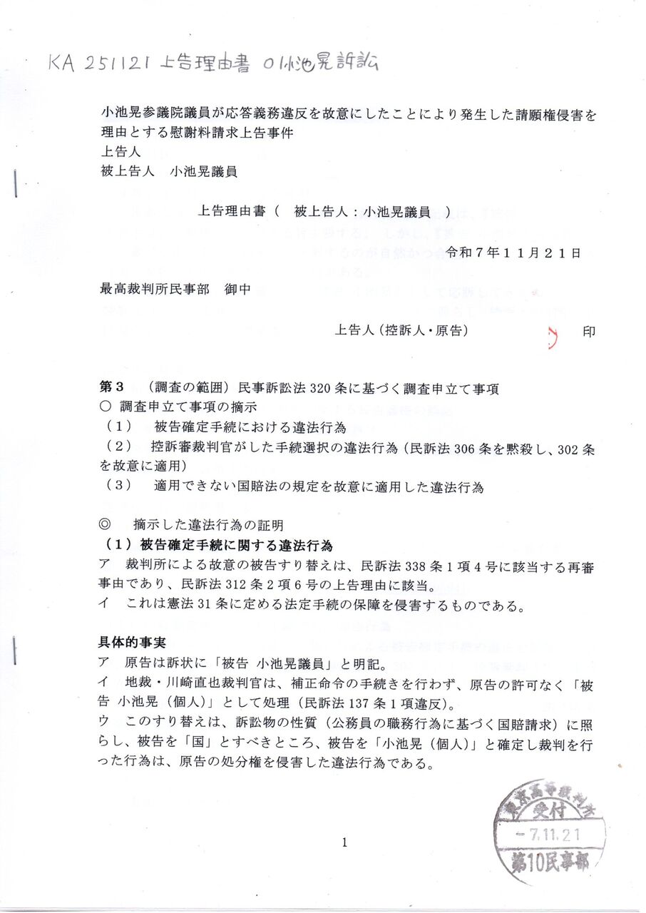 画像版 KA 251121 上告理由書 小池晃訴訟