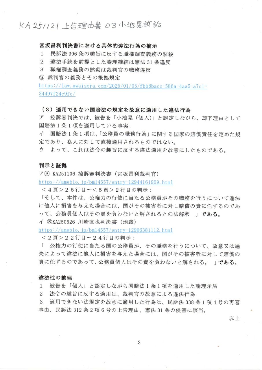 Ⓢ 画像版 KA 251117 上告状 小池晃訴訟