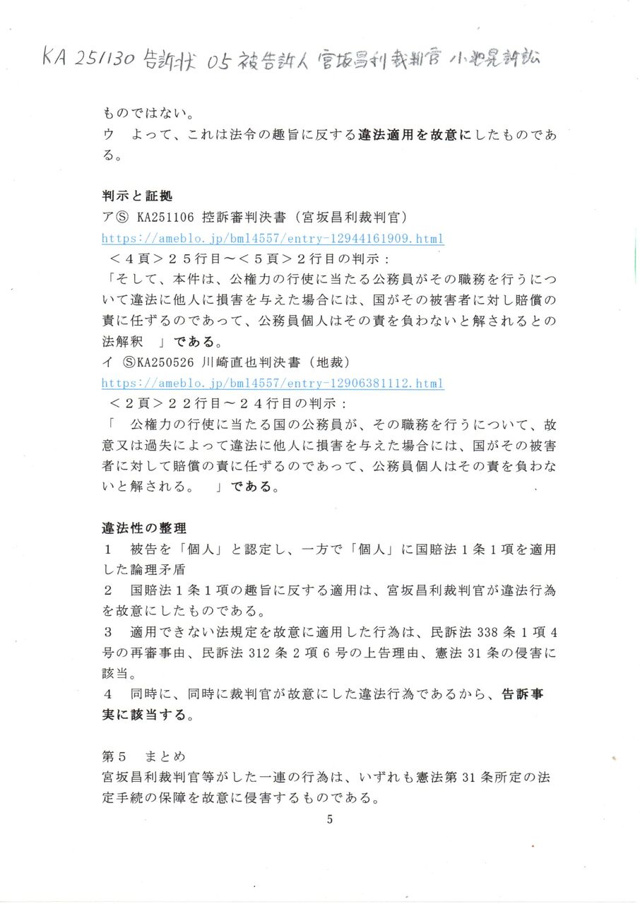 5 KA 251130 告訴状 05被告訴人=宮坂昌利裁判官