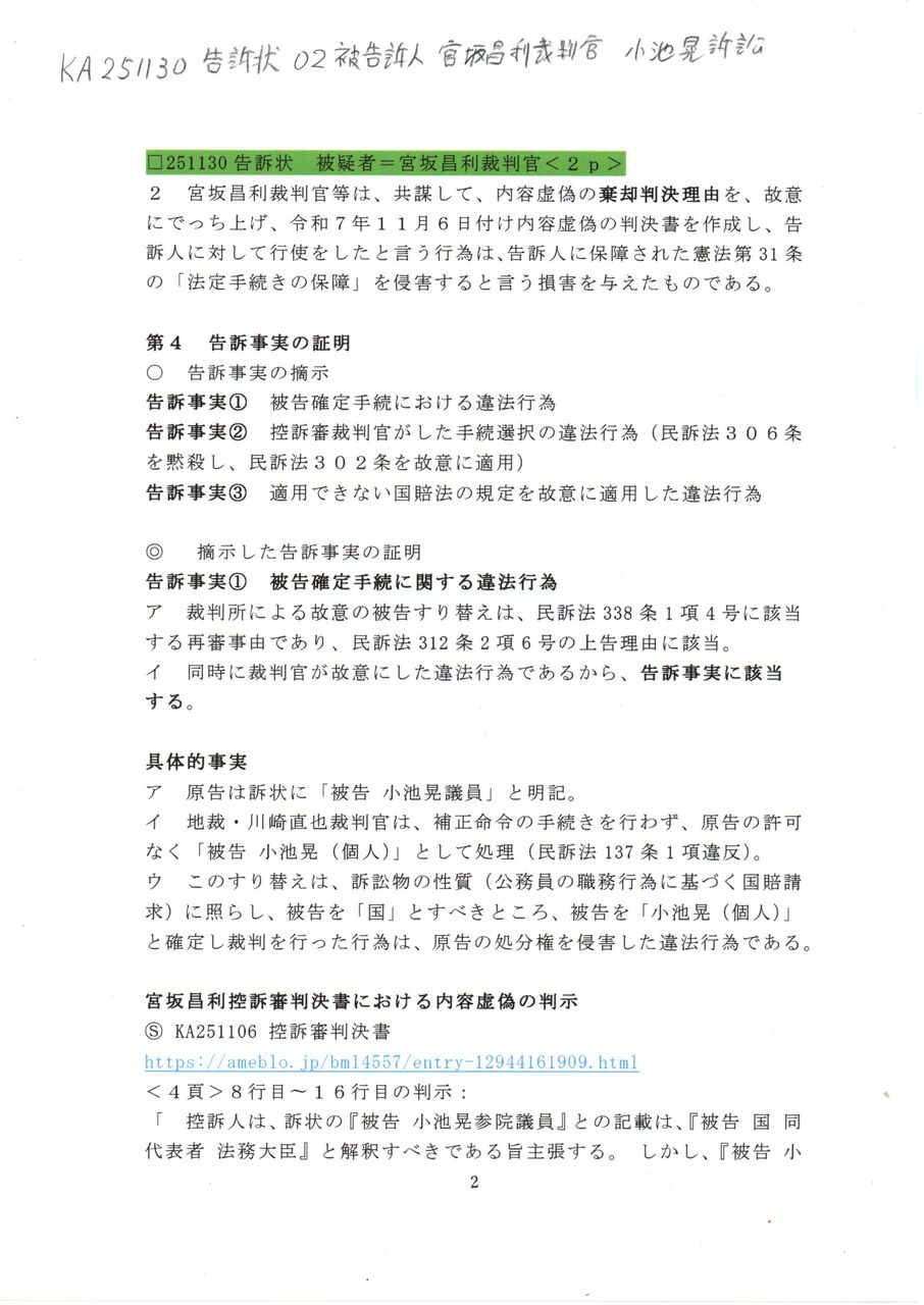 2 KA 251130 告訴状 02被告訴人=宮坂昌利裁判官