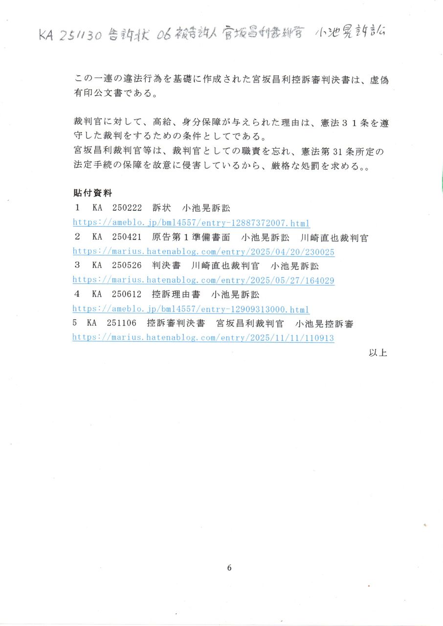 6 KA 251130 告訴状 06被告訴人=宮坂昌利裁判官