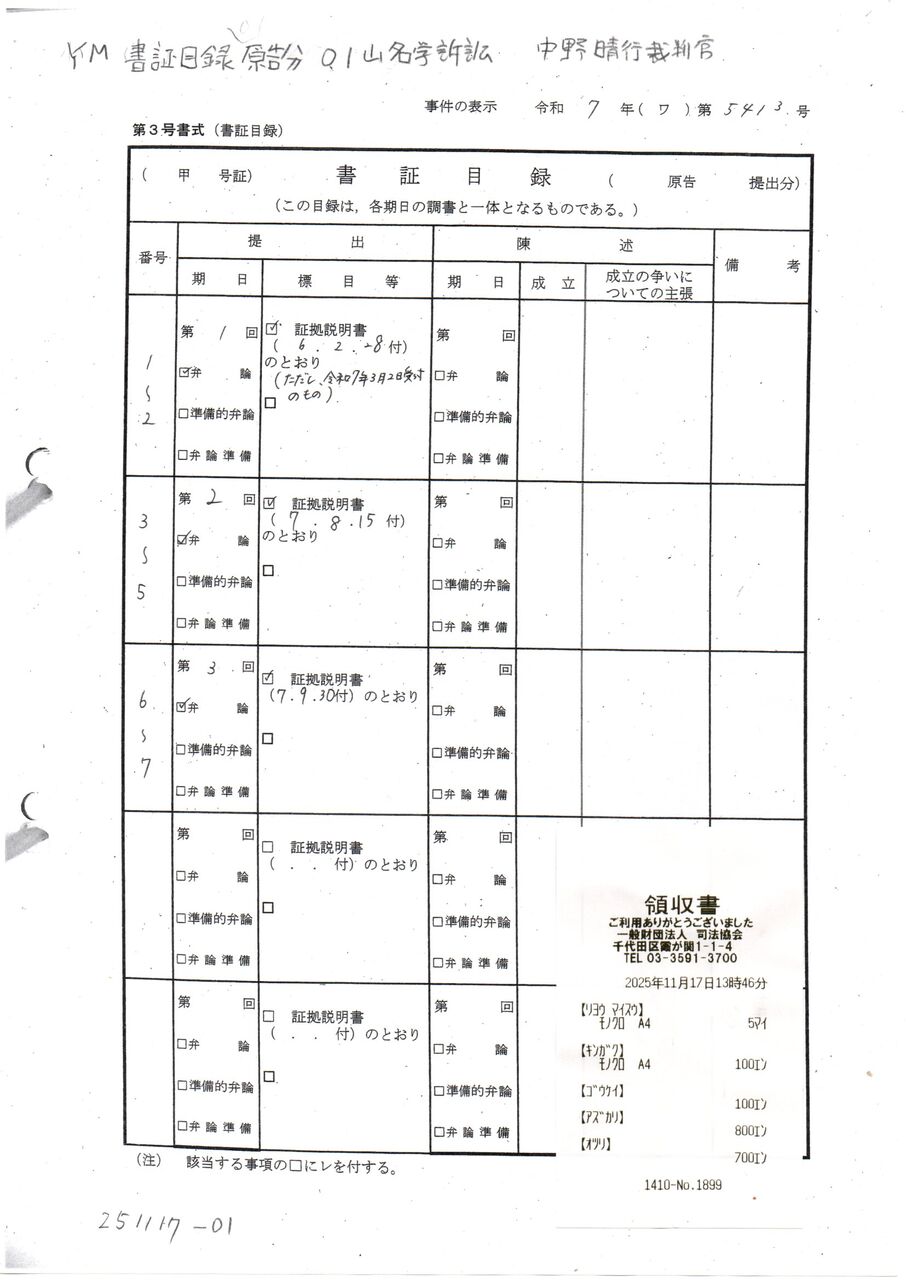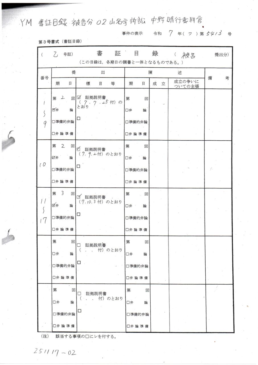 画像版 YM 書証目録 中野晴行裁判官 山名学訴訟