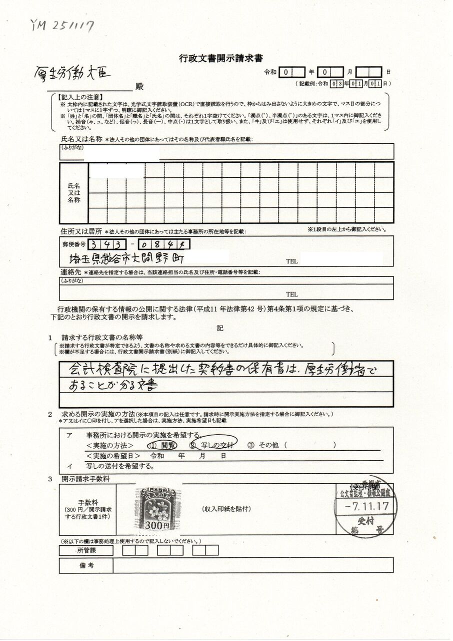 1 YM 251117 開示請求 01契約書原本閲覧